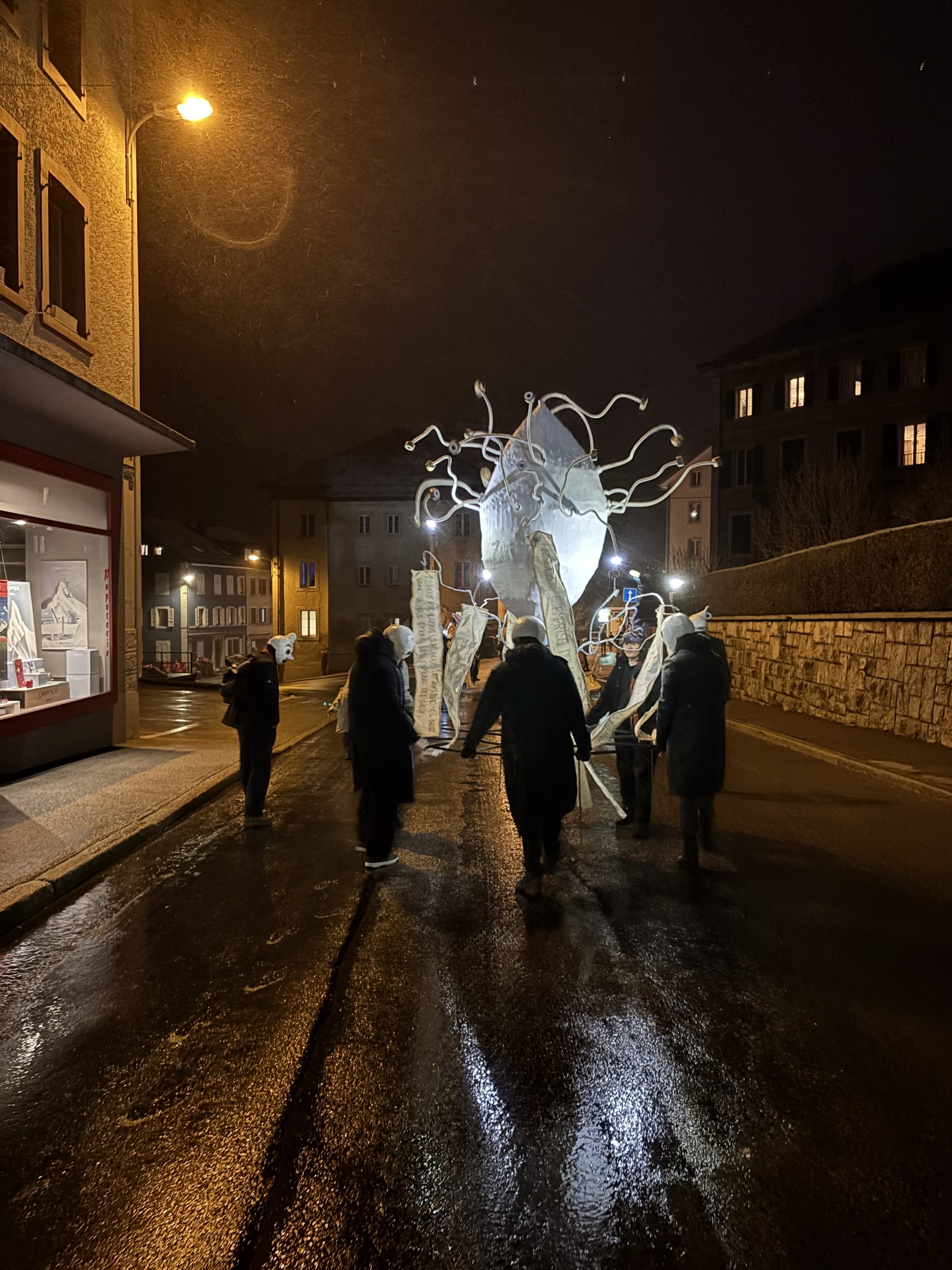Creation of masks and a large wire and papier-mâché sculpture, in collaboration with Olivier Conne, laBAZ self-managed center.